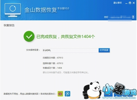 请使用免费帐号ksda679795862,密码:kingsoft,来启用金山毒霸的数据恢复功能。