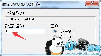 4、右键点击项目修改,修改数值为1(如没有在Parameters目录下添加一个DWORD键值——名称:SMBDeviceEnabled 类型:REG_DWORD 数值:1)重新启动,运行--cmd--输入netstat -an,可以看到已打开445端口。