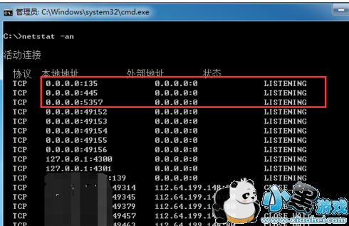 查看445端口,如显示“Listening”表示为打开状态