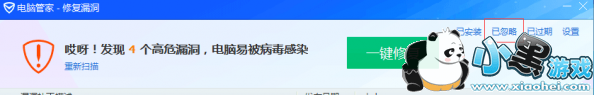 1、用电脑管家漏洞扫描,如果kb号为kb4012212的补丁被智能忽略,处理方法如下: