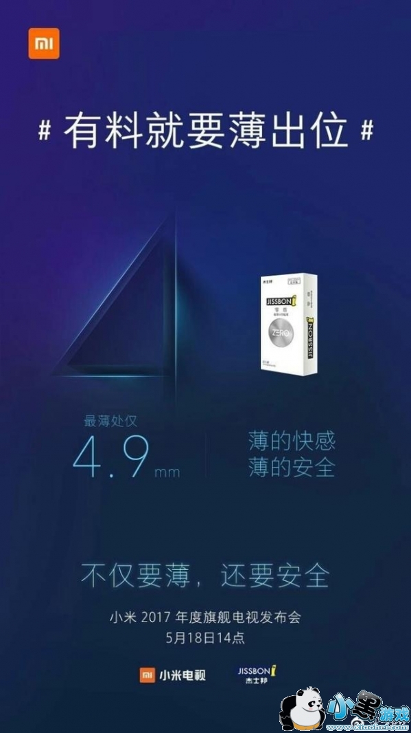有趣的是,小米电视的“薄出位”,也让很多企业一起跟风,例如这个九牧卫浴。一个电视居然能带着这么多未必相干的企业一起玩,确实让人匪夷所思。这不得不让小编想入非非,莫非电视可以直播洗澡画面?