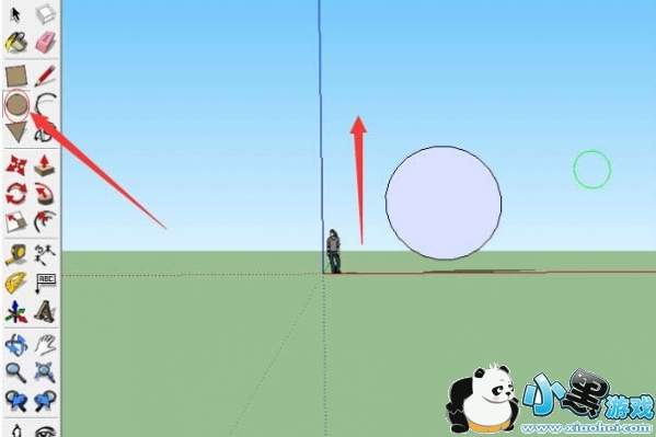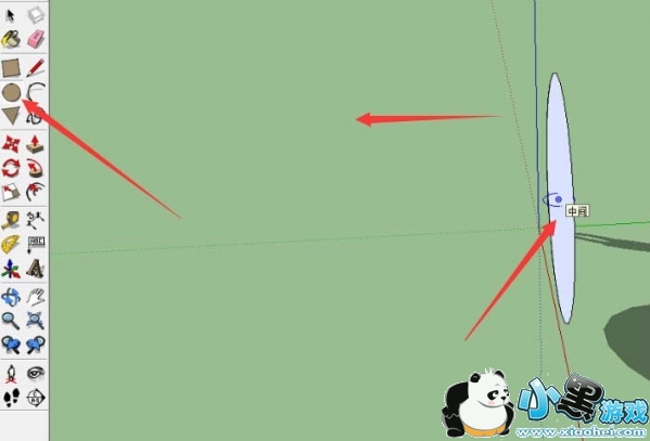 4、选取画圆工具,以之前画的圆的中心为中心,在水平面上画圆,通过控制边,使画的圆跟之前的圆一样大小。