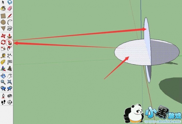 5、按空格键,退出画圆工具,单击选中水平面上的圆,然后选择路径跟随工具,单击竖直面上的圆的边。即可得到一个球体。