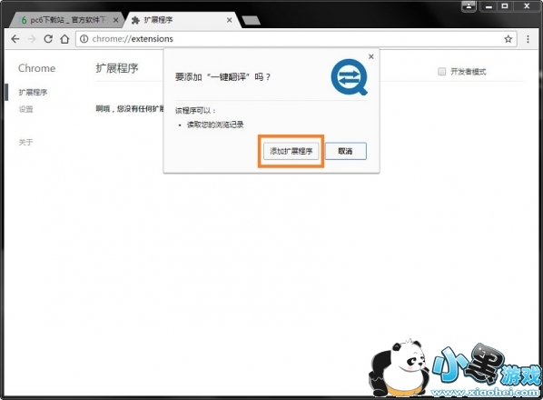 5.用户这时候只需要点击添加按钮就可以把该离线Chrome插件安装到谷歌浏览器中去,安装成功以后该插件会立即显示在浏览器右上角(如果有插件按钮的话),如果没有插件按钮的话,用户还可以通过Chrome扩展管理器找到已经安装的插件。