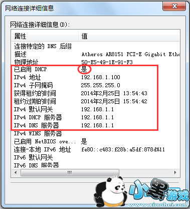 在详细信息的列表中确认已开启DHCP为“是”,可以看到自动获取到的“IPv4地址、默认网关、DNS服务器地址”等信息。如下图所示: