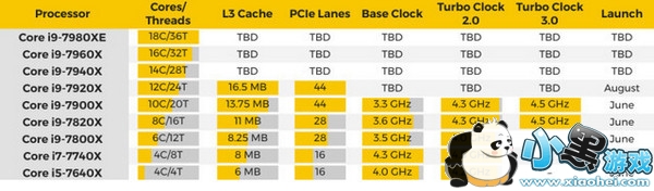 最高配置款为酷睿i9-7980XE,强大的18核处理功能,称得上是当今处理器市场上速度最快的产品。这款处理器TDP将为165W,比其它英特尔处理器功耗更大。除去最高配置款,英特尔还将推出16核、14核、12核和10核的i9处理器,这些产品价格更实惠,更适合一般的游戏爱好者和视频制作团队。