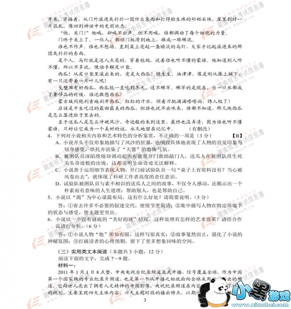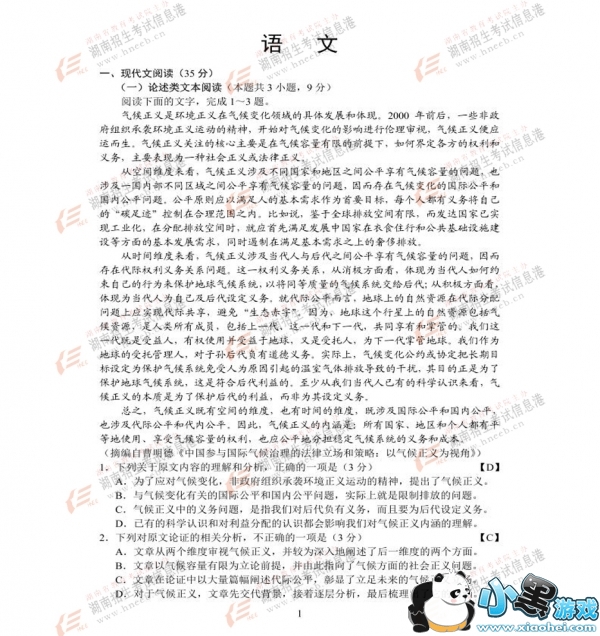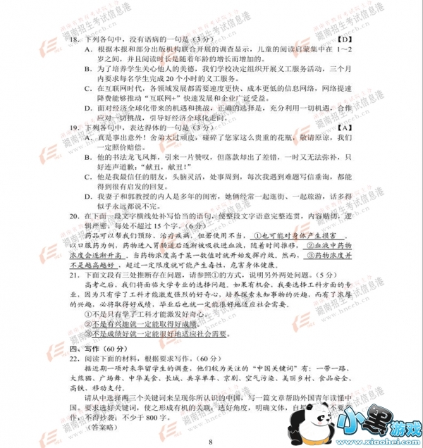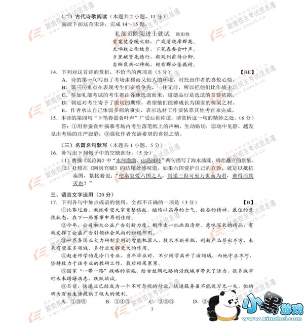 2017年湖南高考语文试题参考答案(供考生参考估分)