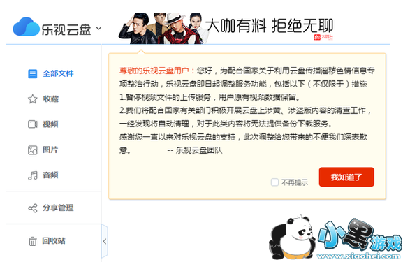 乐视云盘将关闭个人云盘服务