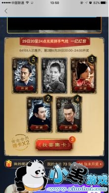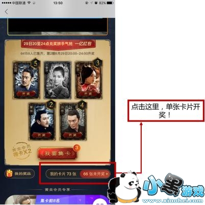 点击进入,之前集的每一张卡片都能开奖!注意是每一张!