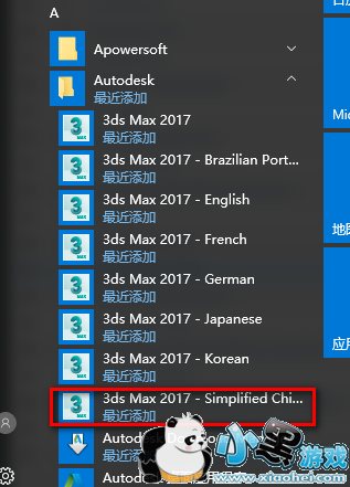 1、打开开始菜单,找到Autodesk的位置,选择简体中文,双击