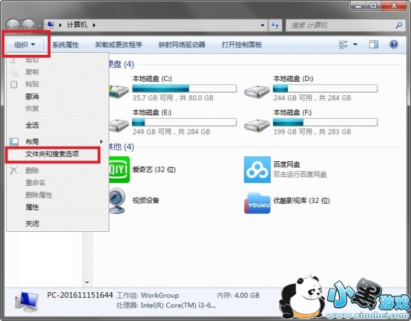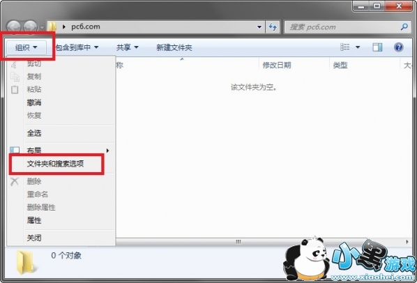 2.点击文件夹左上方【组织】,进入【文件夹和搜索选项】;