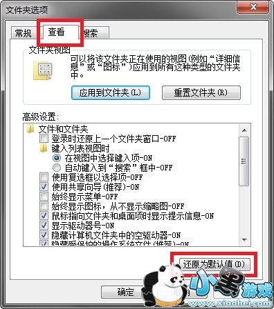 3.点击【查看】选项,点击【还原为默认值】即可;