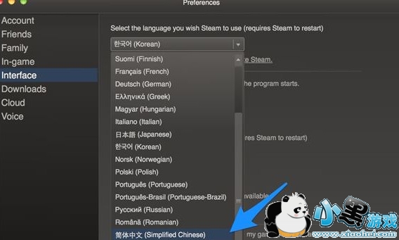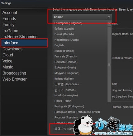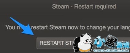 接着软件提示我们需要重新启动 Steam 才可以对设置的新语言第生效,点击 Restart Steam 按钮就可以了。