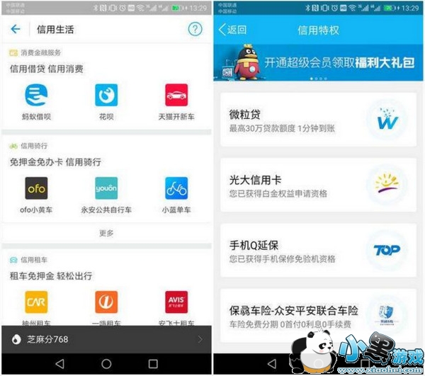 4、使用场景:腾讯信用分较少,较为集中在金融方面,芝麻信用的则颇为广泛。