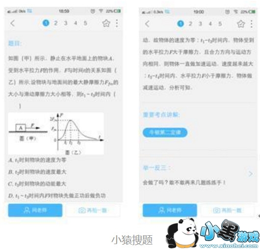 小猿搜题:整体界面简洁,搜题功能明确,没有其余复杂的干扰功能,但其对于搜索到的题目详情来说,解析过于简单,没有知识点讲解、老师答疑、和知识点的巩固提高,不利于学生学习知识,很容易沦为仅仅获得答案的工具,并且其对于无法搜到题目的解决方案较少。