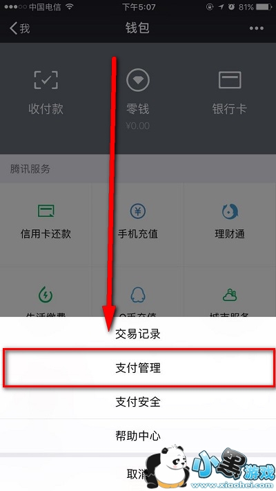 3.点击设置功能内的【支付管理】;