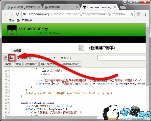 6、点击编辑器上方保存按钮;