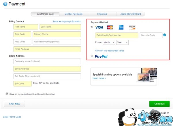 4、目前苹果美国官网支持用Visa、MarsterCard、美国运通和Discover的信用卡以及PayPal支付。所以提前选择好你的支付方式很有必要。接下来就是下单、付款,等待发货吧!