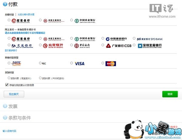 如果你需要发票,记得选择下面这一条。然后在“条款与条件”下选择同意,订单便算是下好了。