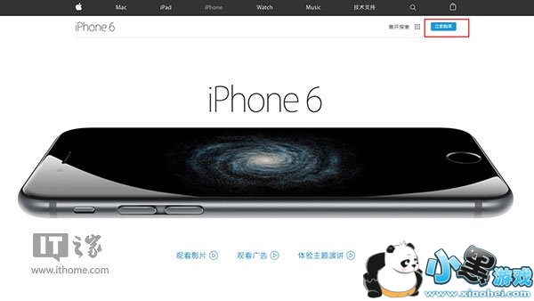 首先进入苹果官网,点击到苹果iPhone6界面,点击“立即购买”。