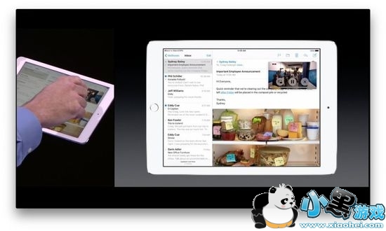 2、Split View功能,可将屏幕分成两部分,同时运行两个应用。此功能目前只能在iPad Air2上实现。