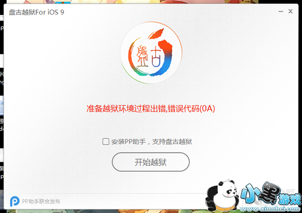 今天国内著名越狱团队盘古携手PP助手发布了iOS9.0-9.0.2正式版越狱工具,支持iPhone4s等全系列可升级iOS9的设备越狱。不过有不少iPhone用户在越狱过程中出现“准备越狱过程环境出错,错误代码(0A)”的错误提示,下面PC6小编教大家解决方法。
