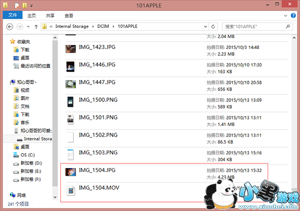 1.利用数据线将 iPhone 6s/6s Plus 跟电脑连接起来,然后在 iPhone/Internal Storage/DCIM/101APPLE(不一定是101,选择序数最大的那个文件夹即可)的路径下找到自己拍摄的 Live Photo 照片,然后将 MOV 视频那一部分复制到桌面上。