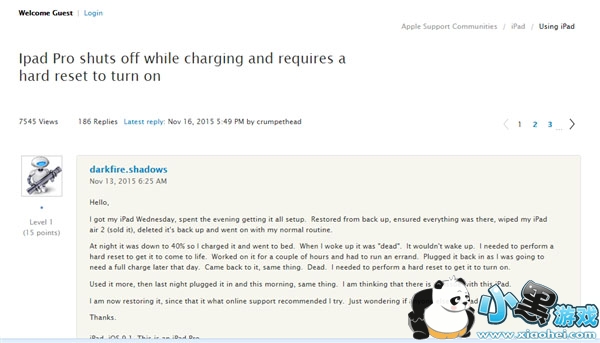 从用户的描述看,问题基本上是,iPad Pro在使用过程中莫名其妙的出现无法唤醒现象,其实这个问题,之前就在iPhone 6S和iPhone 6S Plus上出现过。据悉,目前运行iOS 9.1的iPad Pro都可能会出现这个状况,而造成这个问题的原因到底是由于硬件或是软件,还尚未清楚。一些用户推测或许是从iCloud恢复备份数据过程中出现了未知错误,才导致了这个Bug的发生。