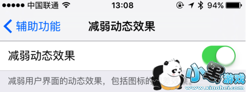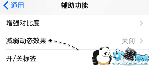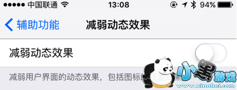 2.当 iOS9 出现动画效果消失的问题时,此时在进入【设置-通用-辅助功能】列表中,可以看到有一个【减弱动态效果】功能,如图所示