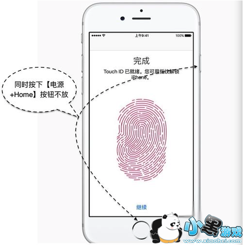 4.另外也可以通过强制重新 iPhone 手机来实现,同时按下【主屏Hone+电源】二个按钮不放,如图所示
