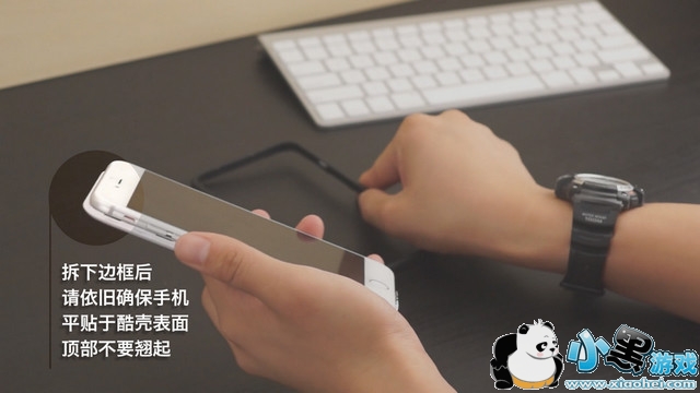 在取下边框的过程中,确保手机平贴放于酷壳上,不要让手机翘起,以免损伤底部LightSync端子。