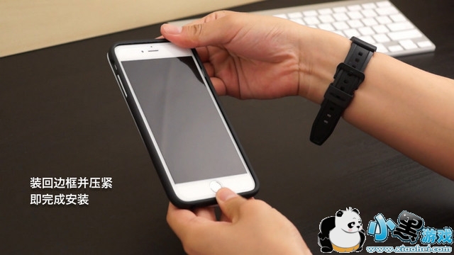 3. 从酷壳底端开始安装金属边框,确定底端正确安装。