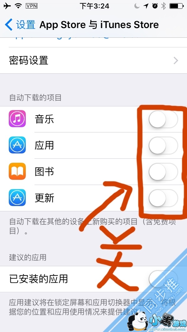 3.切换成功之后记得将自动下载更新全部关掉,不然别人登陆账号之后会自动将下载同步到你的设备上。