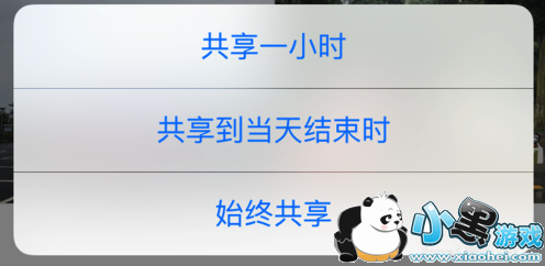 9、点击以后,可以选择共享要共享的时间,可以是一小时,一天或始终共享。如果是想要随时知道对方的位置,那在对方的 iPhone 上就可以设置为【始终共享】这个选项。