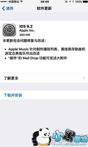 iOS 9.2正式版的升级过程包含两个途径,一个是直接在 iPhone、iPad、iPod touch 上进行 OTA 在线下载升级系统,用户可以在设备中的【设置】-【通用】-【软件更新】中看到【下载并安装】选项,点击它既可进行在线升级系统。需要注意的是,再在线升级过程中,用户需保证好设备电量大于 50% 并且设备当前的无线网络环境畅快,否则系统升级可能会出现问题或者失败。