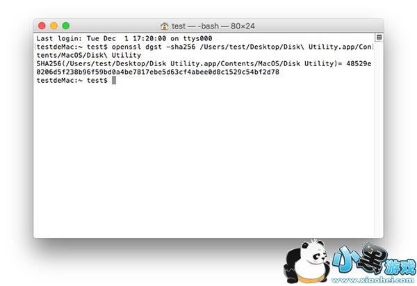 2.打开终端输入命令:openssl dgst -sha256,注意数字最后有一个空格。将拷贝出来的“Disk Utility”拖拽到终端界面。如果得到的值是:48529e0206d5f238b96f59bd0a4be7817ebe5d63cf4abee0d8c1529c54bf2d78 ,即可进入下一步。