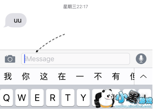 2、如下图所示,在当前这个短信输入框中显示有 iMessage 字样 ,说明当前是用网络来发送的信息的。