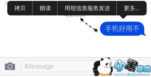 5、此外如果当前用网络发送不了 iMessage 信息时,请长按要发送的短信内容,然后选择【用短信息服务发送】选项,如图所示