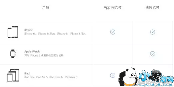 值得一提的是,Apple Watch 只能应用在商店,不能应在是应用支付当中,而 iPad Air 2、iPad mini 3、iPad mini 4 以及 iPad Pro 仅应用在应用支付当中,不能应用在商店当中,而 iPhone 6S、iPhone 6S Plus、iPhone 6、iPhone 6 Plus 均可应用。