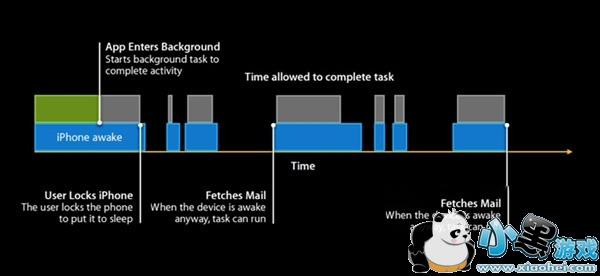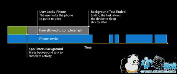 在iOS 7之前,如果应用在后台运行,那么即使你已锁屏了,这些应用还会继续运行,你的iPhone一直处于唤醒状态,直到后台应用完成任务或超时才能进入休眠。