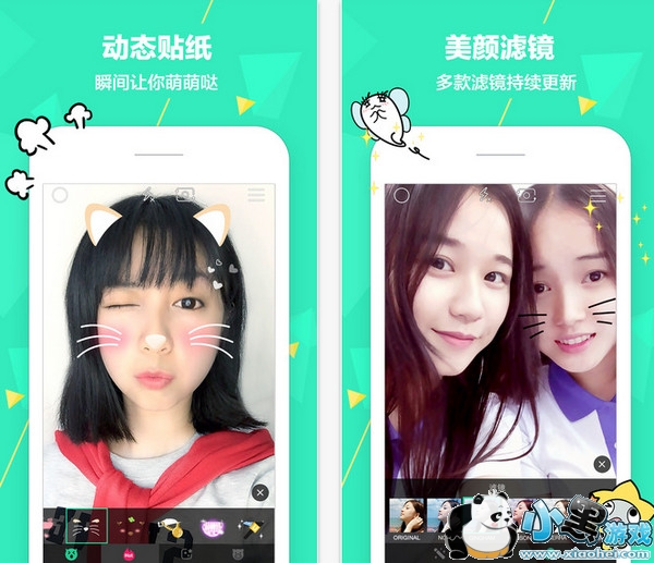 用户打开 APP,可以拍摄短视频和照片,然后分享到朋友圈等社交媒体。产品最大的特色在于,Faceu 可以实时的在人脸上叠加具有动态效果的贴图和道具,这一点与国外社交产品Snow有些类似。同时应用还提供美颜和滤镜的功能。美颜主要做磨皮美白的效果,清晰度表现还不错,但暂时不支持眼睛等五官的局部调整;滤镜则带着一些 Instagram 的味道。