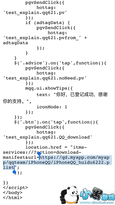 5. 打开下载的网页(我们需要在手机上改后缀名为 .TXT 再打开,PC 上则用记事本打开),在这个网页中我们会看到一个域名为“myapp.com”的链接。