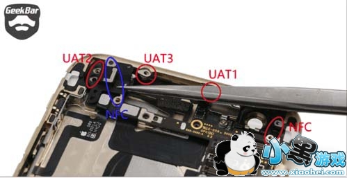 2、iPhone 6上半部分天线涉及到Cellular副天线、双频WLAN、蓝牙、GPS、NFC等功能。
