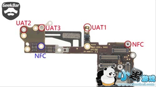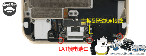 iPhone 6主板上半部分天线馈电端口(正面)