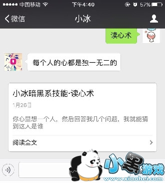 方法二:关注微软小冰微信公众账号之后,输入>>读心术<<就可以在为心里面玩啦!