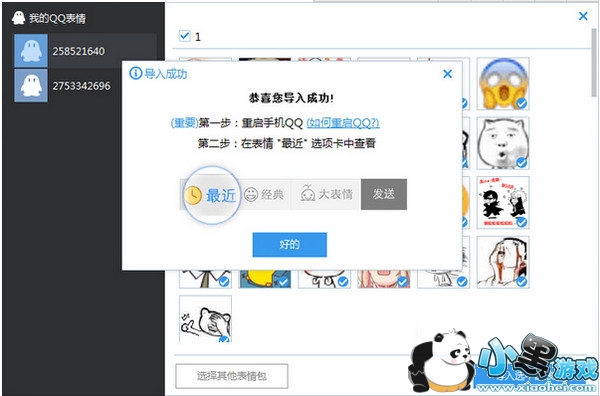 选择QQ号,选择好你爱的表情就可以一键导入啦~