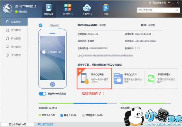 海马苹果助手iPhone版V5.0.0.2 - 授权:免费软件 大小:10.2M 语言: 简体