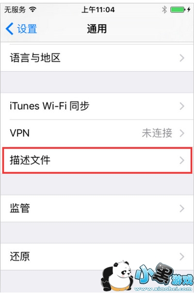 第二步、然后在设备中点击【设置】->【通用】->【描述文件】。