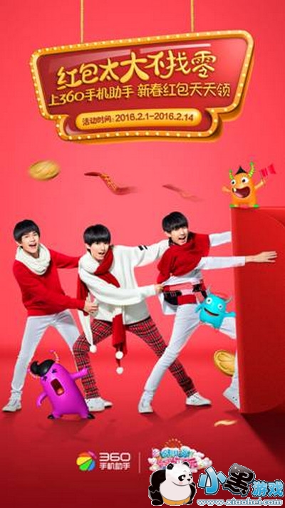 360手机官方微博公布的数据,2月1日至14日,360手机助手平台将连续发放3.6亿现金的红包。仅仅在除夕之夜,360手机助手的代言人TFBOYS将为四叶草们派发巨额现金的大红包。春节红包总额3.6亿最高2016元,只发现金不发券!2016年春季前夕,360手机助手为红包总额注入了3.6亿的现金,且将单人红包最高金额上调至2016元!也就是说,网民们有可能在360手机助手上一下子抢到2016元的超大红包!