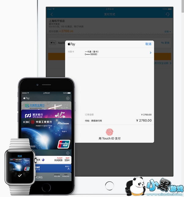 apple pay可以在商店或app内进行支付,既简单,又安全。你再也不必到处翻找钱包,也不用再浪费时间寻找合适的卡了。现在,你只要轻轻一触*,即可用你的信用卡或借记卡进行支付。Apple Pay 简便易用,让你能使用储存在常用设备中的各种卡进行支付。它在使用过程中不会泄露你卡片的详细信息,因为这些资料根本不会储存在你的设备上,因此在 iPhone、Apple Watch 或 iPad 上用 Apple Pay 进行支付,非常安全、私密。